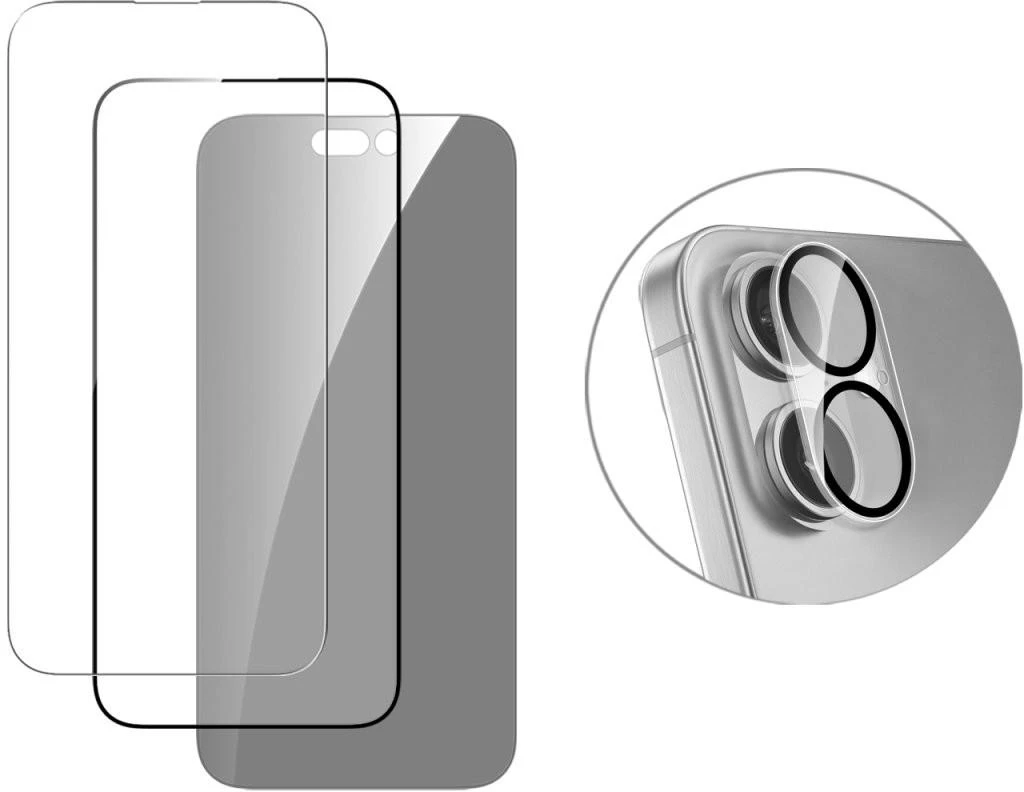 Sorge für maximalen Schutz deines iPhone 16 mit unseren hochwertigen Gläsern. Das Set enthält ein extrem widerstandsfähiges 9H-Schutzglas, ein Privacy Glas für zusätzlichen Sichtschutz und ein spezielles Kameraglas, um deine Kamera vor Kratzern und Beschädigungen zu bewahren. Der beiliegende Montagerahmen erleichtert dir die präzise Anbringung des 9H-Schutzglases und des Privacy Glases.