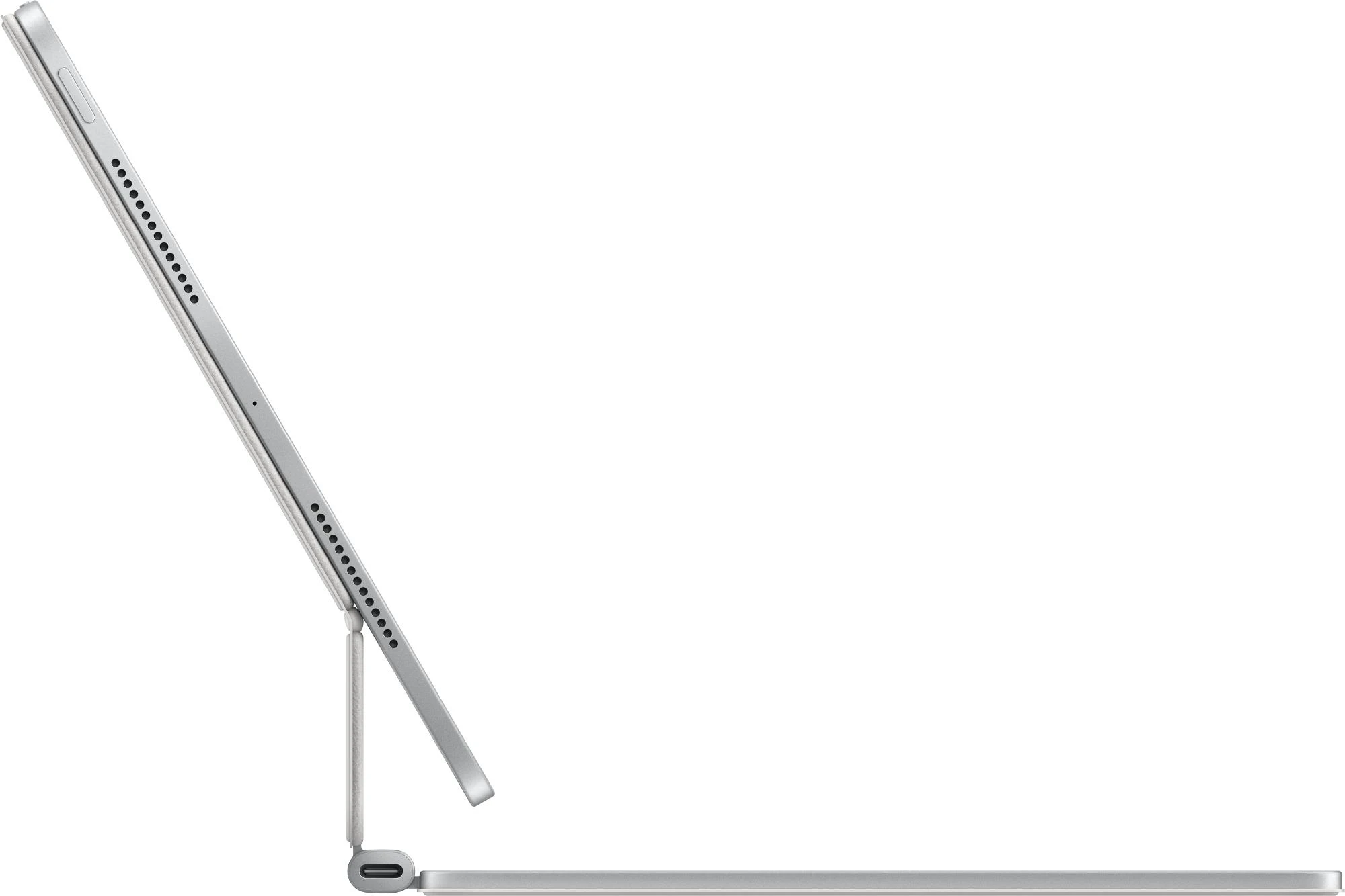 Das Magic Keyboard für das iPad Pro kommt in einem eleganten, mobilen Design aus Aluminium für ein fantastisches Tipp‑ und Trackpad-Erlebnis. Die Tastatur hat eine Reihe mit 14 Funktionstasten, um schnell auf Displayhelligkeit, Lautstärke und andere Features zuzugreifen, und einen USB‑C Anschluss zum Pass‑Through Laden. Das freischwebende Design lässt sich stufenlos an mehrere Betrachtungswinkel anpassen.